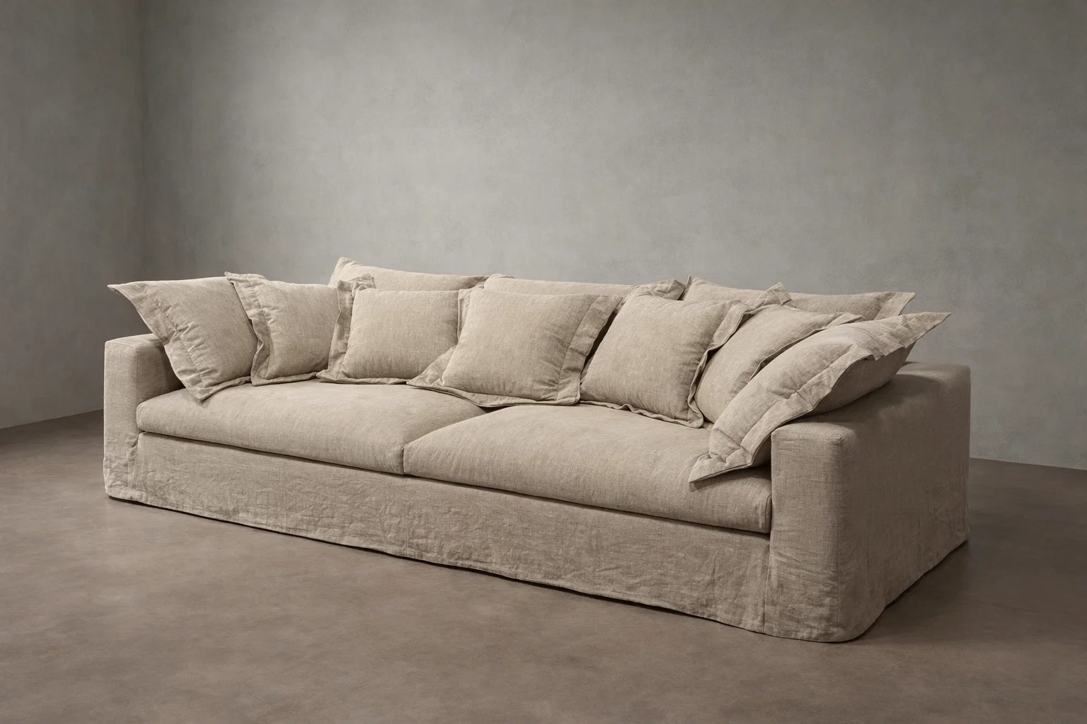 Importante: El Topper o cojín superior es extraordinariamente suave y puede cambiar de forma con el uso diario. Se recomienda ahuecar los cojines con frecuencia para mantener la forma del sofá. Esta transformación no debe considerarse un defecto, sino una característica natural que aporta un aspecto único y acogedor.