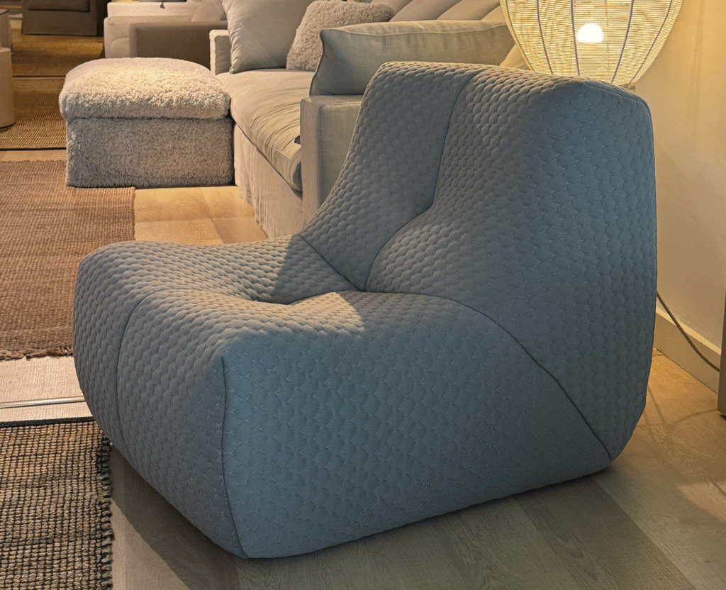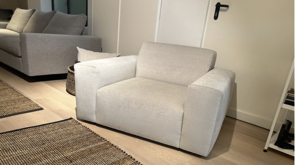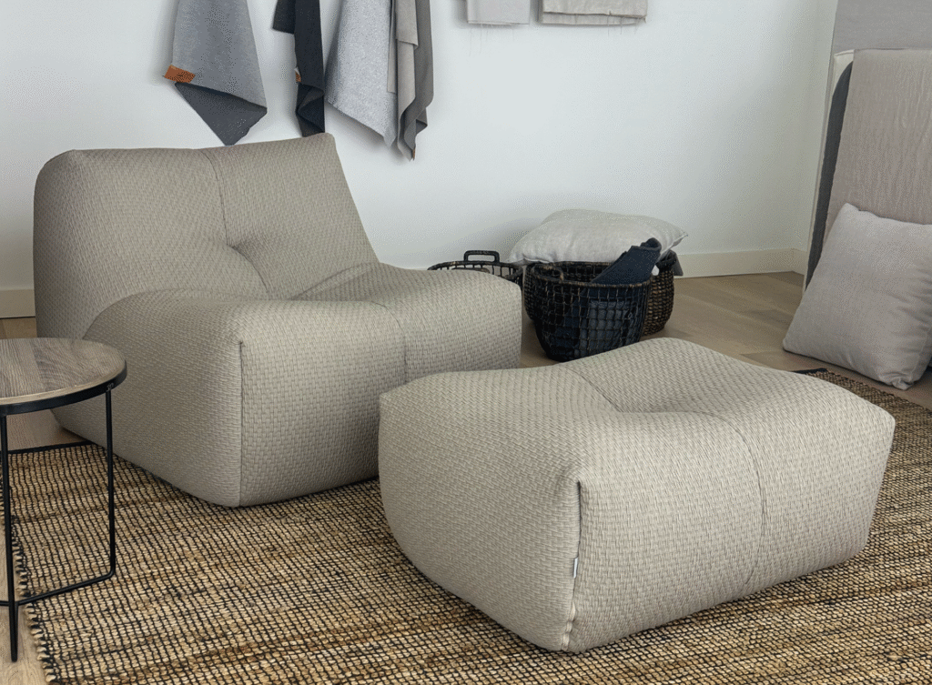 Butaca de 85×95 cms. Pouff 80×60 cms.